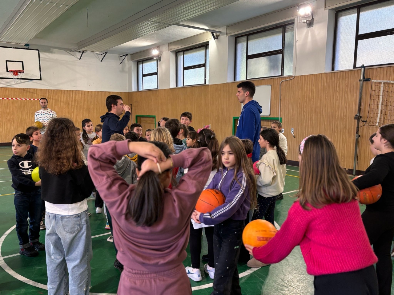 Per la scuola primaria il tema sport è stato anche affrontato attraverso un laboratorio dedicato al Basket con due allenatori della PVL Luino, Roberto Guali e Alessio Bertani, che gioca nella prima squadra DR1 Luino. Con esercizi di passaggi, uso della palla, tiri a canestro hanno reso la mattinata divertente, educativa e coinvolgente per tutti i bambini.
